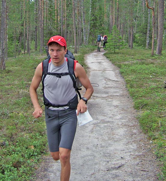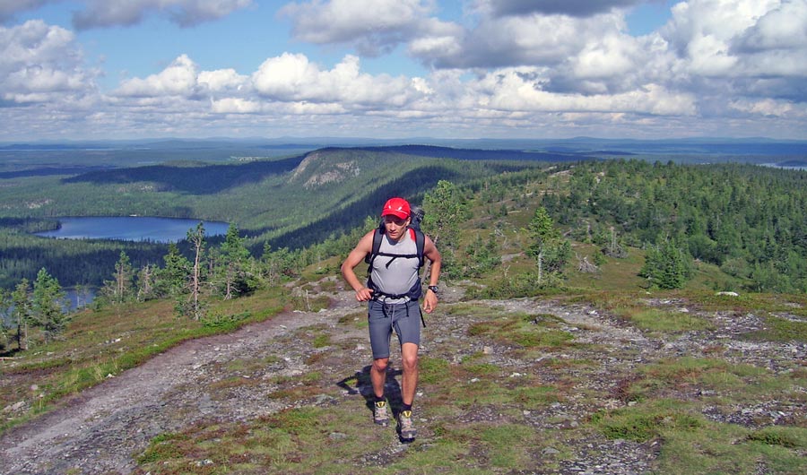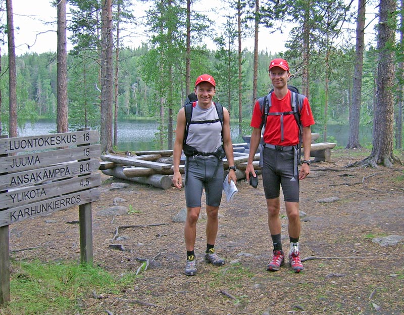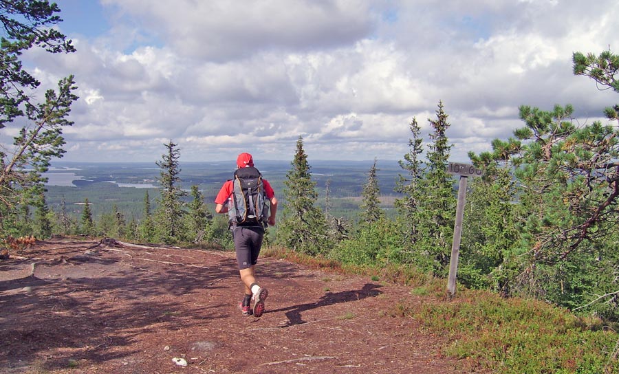 Karhunkierros tuli juostua elokuun lopulla... kaksi päivää käytettiin aikaa, puolivälissä yövyttiin Jussinkämpällä. Reput painoi lähtiessä 6,9 + 7,3 kg, tullessa 4,7 + 4,7.