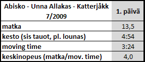 Autolla Rovaniemeltä Abiskoon ja auringonpaisteessa nousu avotunturiin. Illalla ei enää niin lämmintä ollutkaan, yön aikana ulkolämpömittari painui +1:een.