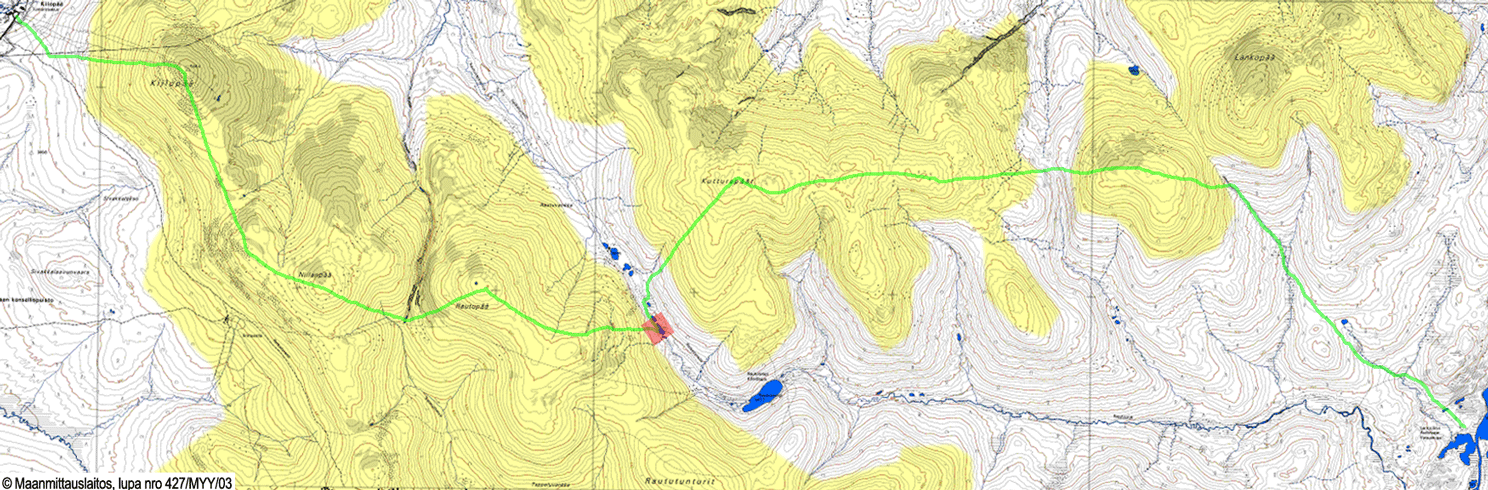 | Matka linnuntietä Lankojärvi - Kiilopää |